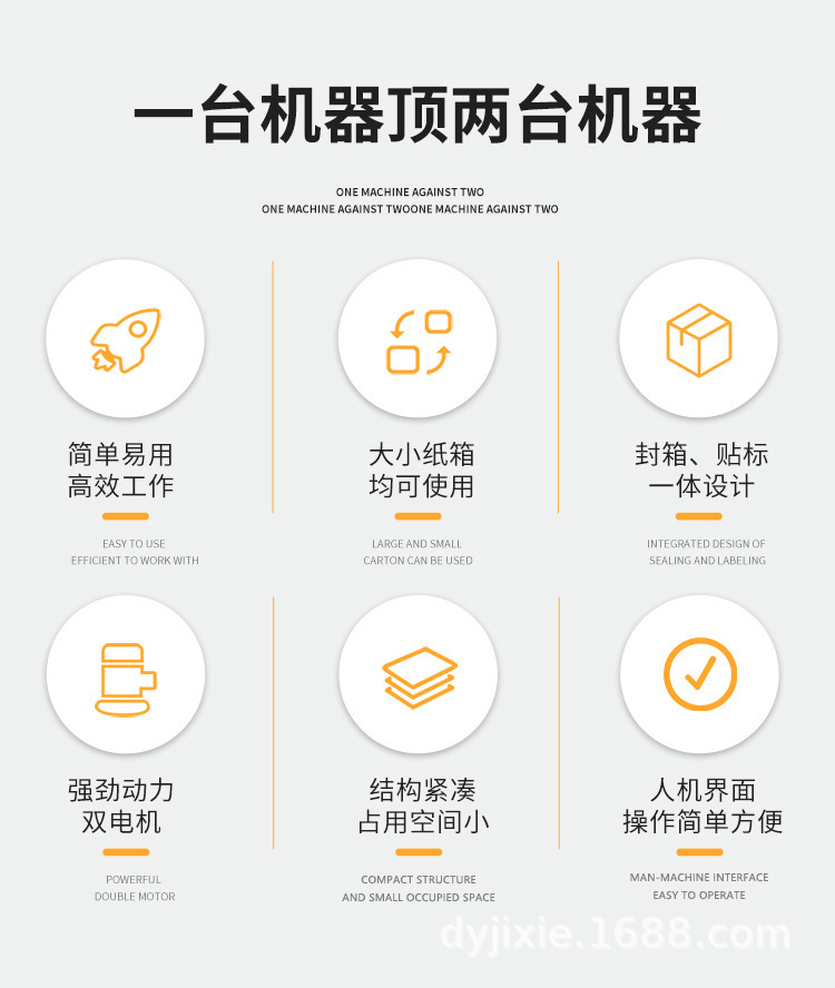 - 包裝一致性:保證了封箱和貼標質(zhì)量的一致性。每個紙箱的封箱牢固程度和標簽位置都能保持高度一致,使產(chǎn)品包裝更加標準化、規(guī)范化。這有助于提升產(chǎn)品整體形象,在消費者眼中,整齊、規(guī)范的包裝代表著企業(yè)對產(chǎn)品質(zhì)量的重視。