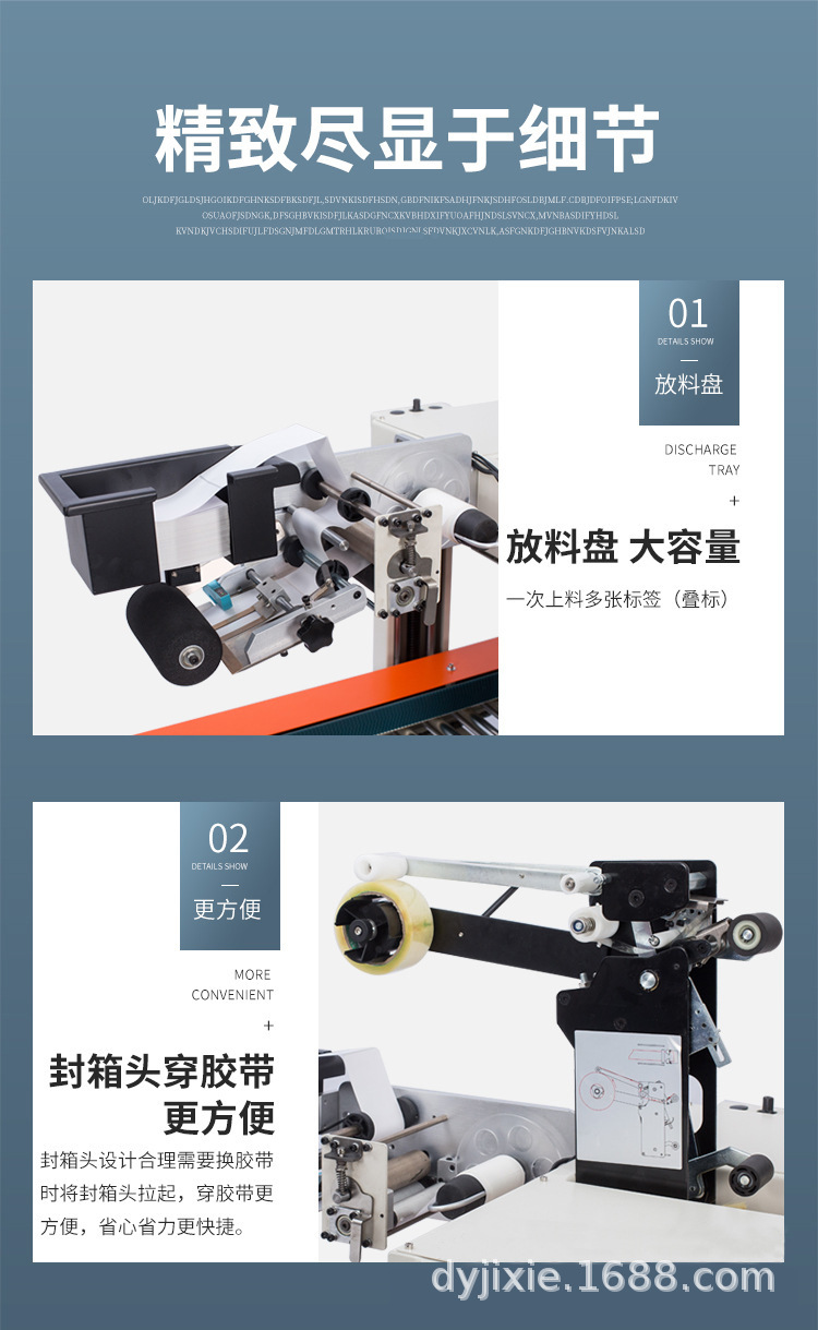 - 精準定位貼標:配備了先進的傳感器和精準的機械傳動系統(tǒng)。在貼標時,能夠精確地將標簽貼在紙箱指定的位置,如正中央、側面的固定高度等。這對于一些需要嚴格按照標準進行貼標的產(chǎn)品尤為重要,比如在藥品包裝中,藥品的外箱標簽需要準確標注成分、用法用量等信息,封箱貼標一體機可以保證標簽位置的準確性,方便消費者查看。