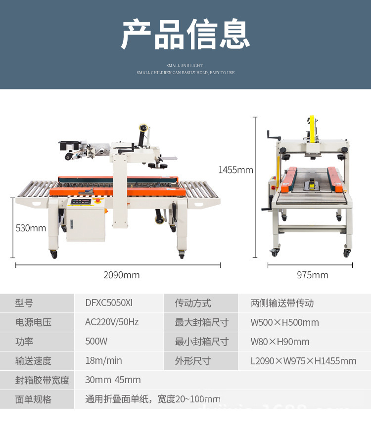 - 產(chǎn)品規(guī)格適配性:可以適應多種不同規(guī)格的紙箱。通過簡單的調(diào)節(jié),如傳送裝置的寬度調(diào)整、貼標位置的參數(shù)設置等,就能對不同大小、形狀的紙箱進行封箱和貼標。例如,在一個生產(chǎn)多種產(chǎn)品的工廠,產(chǎn)品包裝紙箱有大有小,封箱貼標一體機可以很方便地進行設置,兼容各種規(guī)格的紙箱。