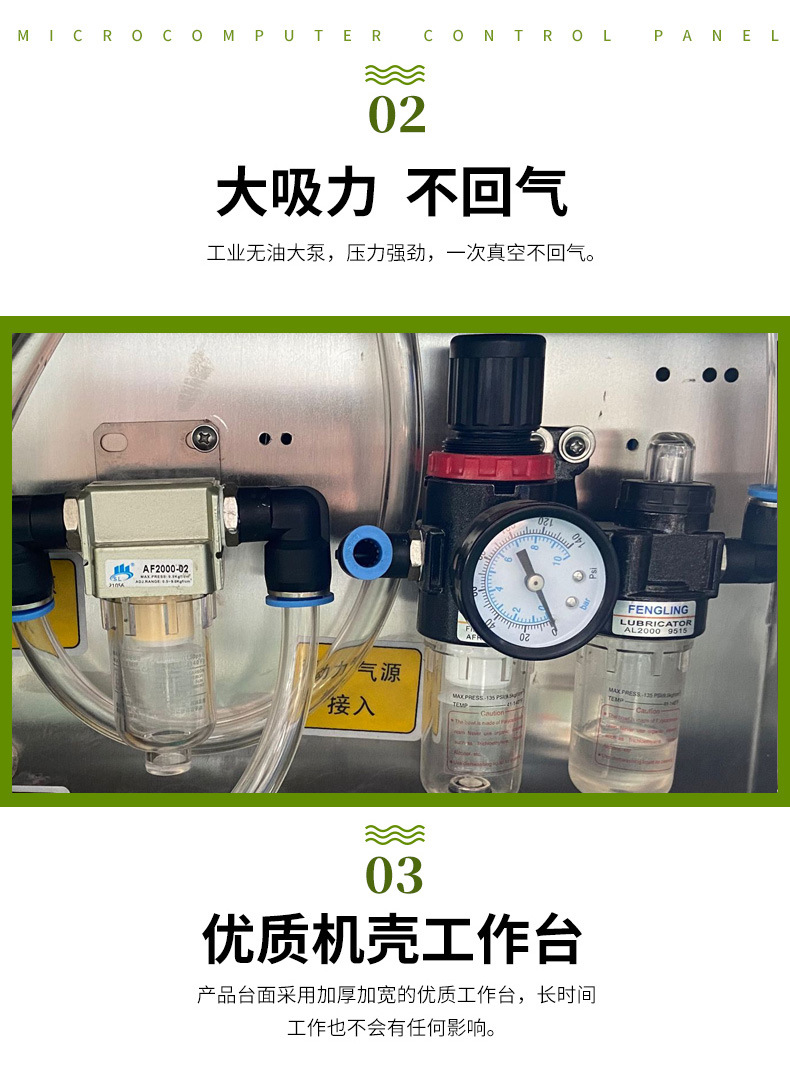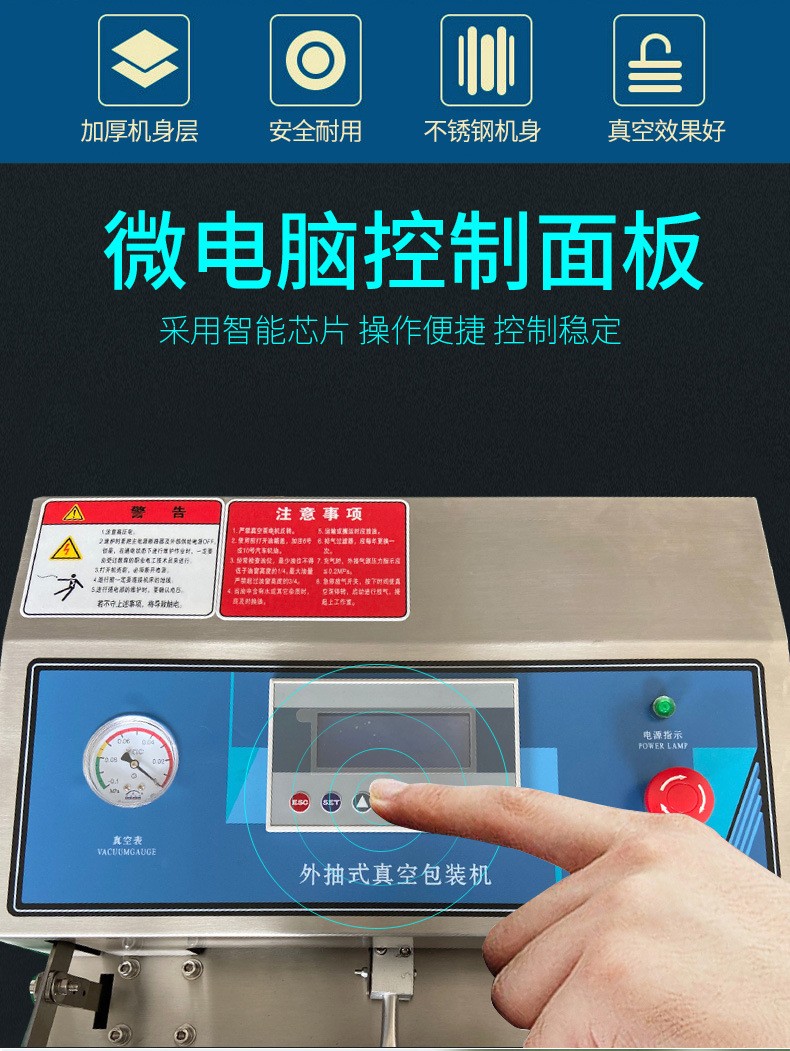 - 真空腔清潔:定期打開真空腔,清理腔體內(nèi)的雜物、灰塵和殘留的包裝材料。尤其要注意清理真空腔的角落和縫隙,可以使用小型的清潔工具,如毛刷等,確保無雜物殘留,以免影響真空密封效果。