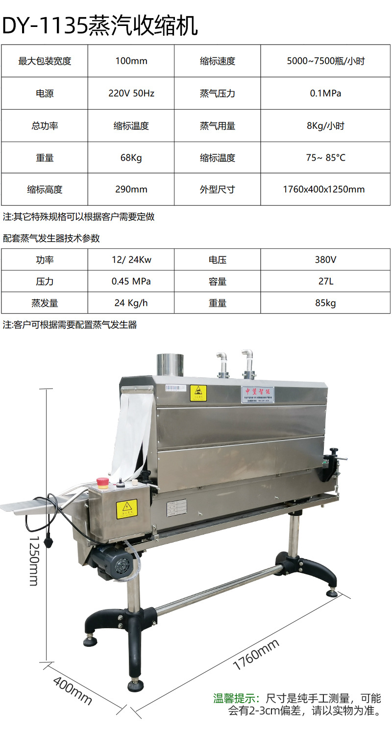 - 能夠精確控制收縮程度。通過調節蒸汽的溫度、壓力和產品在收縮通道中的輸送速度,可以根據不同的包裝薄膜材料和產品要求,實現不同程度的收縮,滿足多樣化的包裝需求。