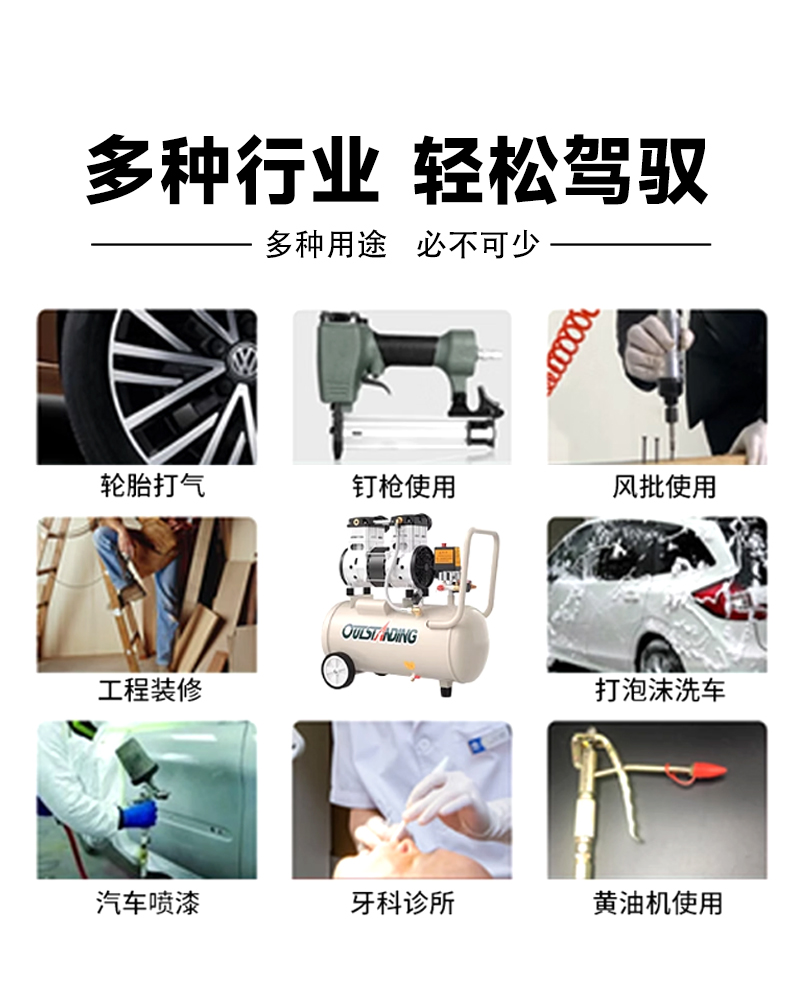 全新充氣泵靜音無油空氣壓縮機高壓打氣泵工業級空氣大功率充氣