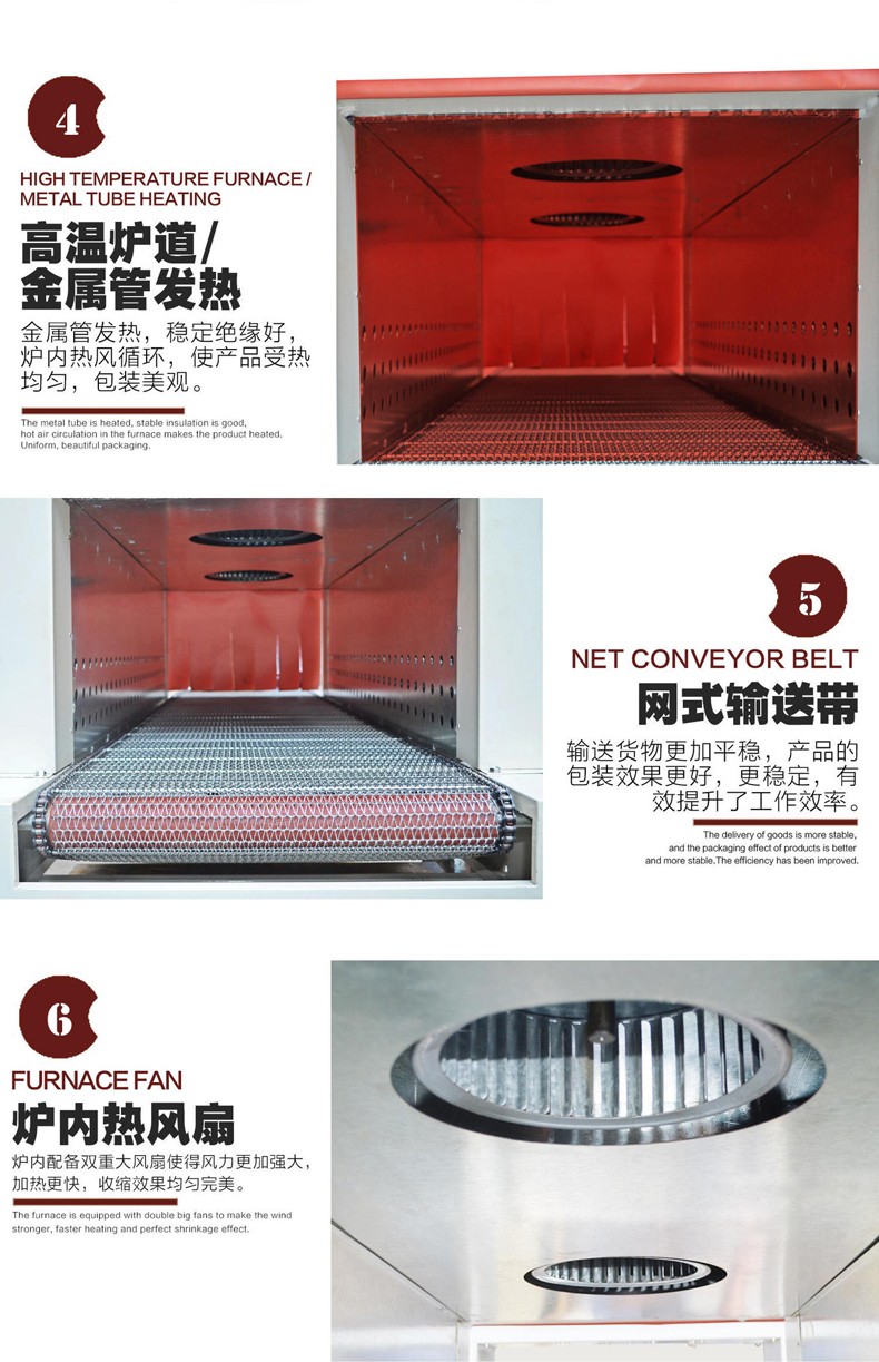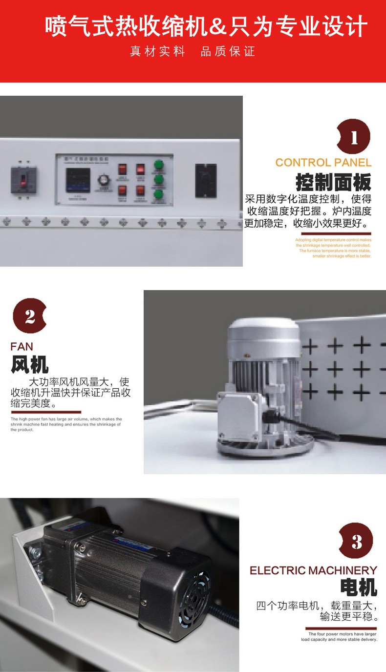 • 高效節能:通過合理的加熱系統設計和保溫隔熱措施,噴氣式熱收縮機在保證包裝效果的同時,能夠有效利用能源。與一些傳統的熱收縮包裝設備相比,它的加熱速度更快,熱量散失更少,從而降低了能源消耗和生產成本。