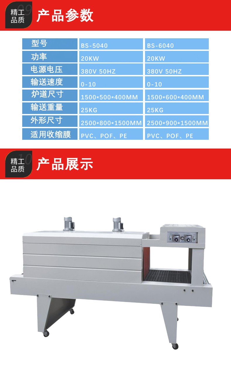 - 主要包括輸送帶和驅(qū)動電機。輸送帶用于承載并輸送被 PE 薄膜包裹的產(chǎn)品通過加熱區(qū)域。驅(qū)動電機控制輸送帶的速度,這個速度是可以調(diào)節(jié)的。其重要性在于確保產(chǎn)品在加熱區(qū)域停留足夠的時間,讓 PE 薄膜充分收縮。例如,如果輸送帶速度太快,PE 薄膜可能來不及完全收縮就離開了加熱區(qū)域,導致包裝質(zhì)量不佳;如果速度太慢,又會影響包裝效率。