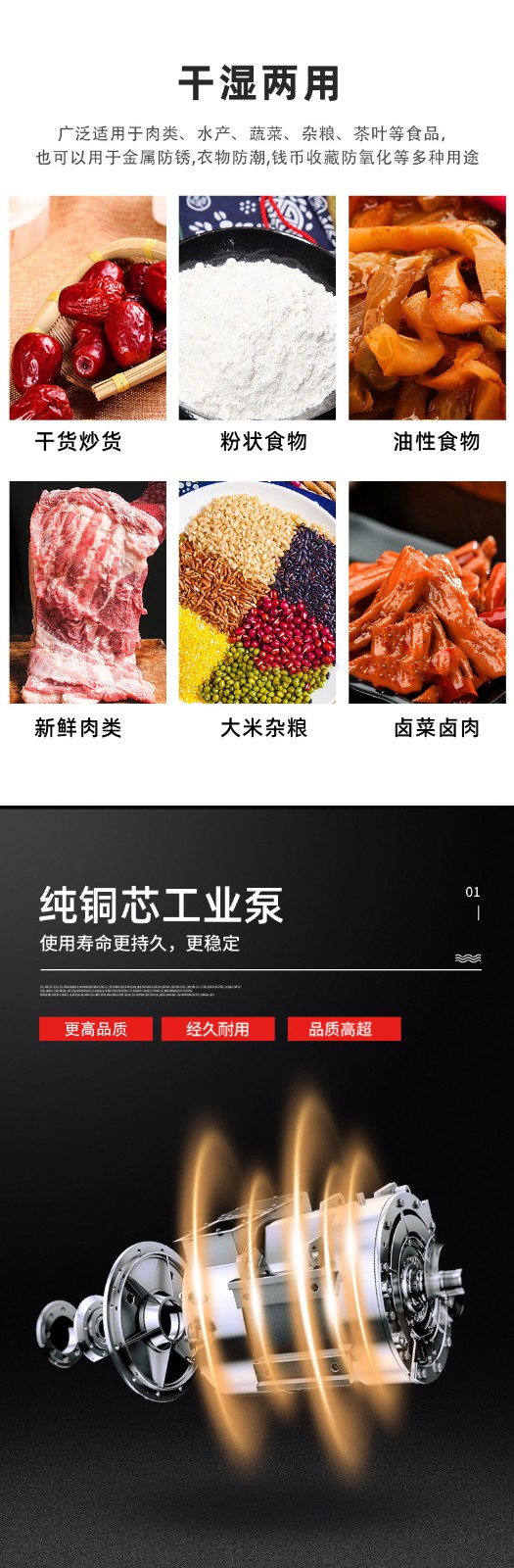 • 食品行業:常用于肉類、魚類、禽類、蔬菜、水果、糕點等食品的真空包裝,可延長食品的保質期,防止食品氧化、霉變和腐敗。例如,將新鮮的肉類真空包裝后,可在常溫下保存數天甚至數周,而在冷藏條件下,保質期可進一步延長。