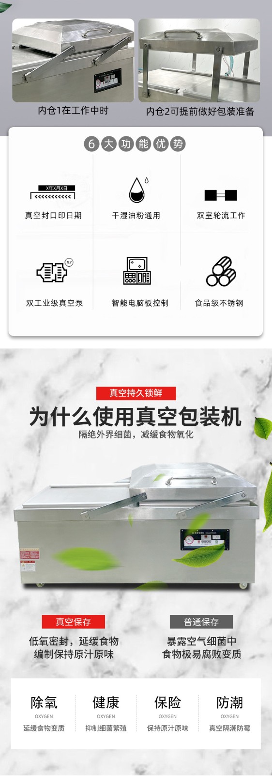 大型抽真空封口機商用平板雙室真空機 干濕兩用海鮮熟食品抽真空機 全自動雙室真空包裝機