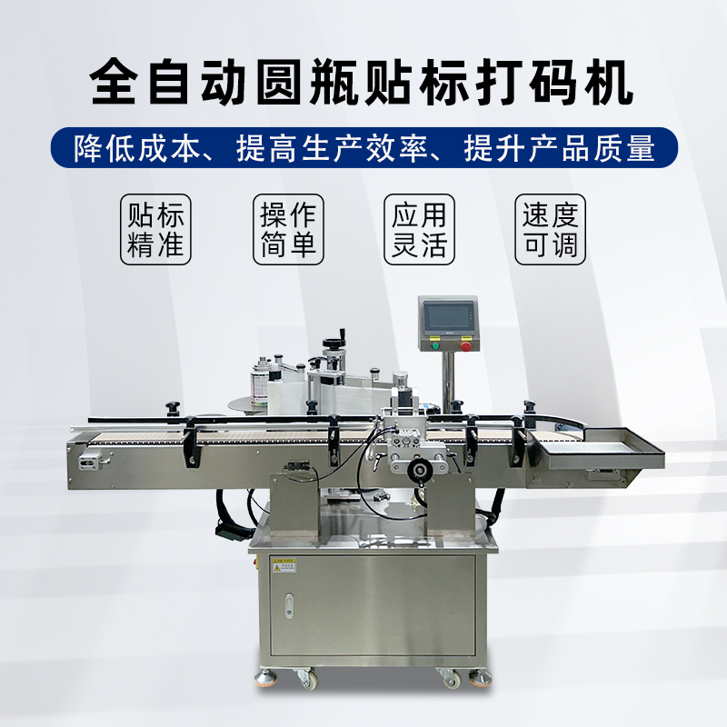 - 貼標:當圓瓶到達貼標位置時,貼標機構的標簽牽引裝置根據預設的標簽長度,將標簽從標簽卷上牽引出來,貼標頭在控制系統的指令下,將標簽準確地貼附在圓瓶表面。同時,壓標裝置對標簽進行壓實,使其牢固地粘貼在瓶身上。