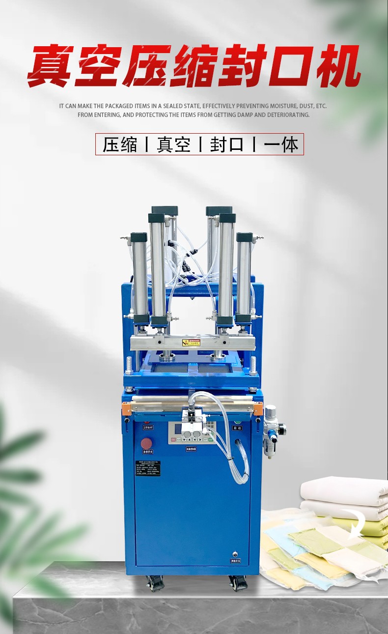 • 放入機器:將裝有物品的包裝袋放入真空壓縮封口機的工作臺上,將袋口平整地放置在封口條上,然后合上機蓋或啟動相關裝置,使包裝袋處于密封的工作腔室內。