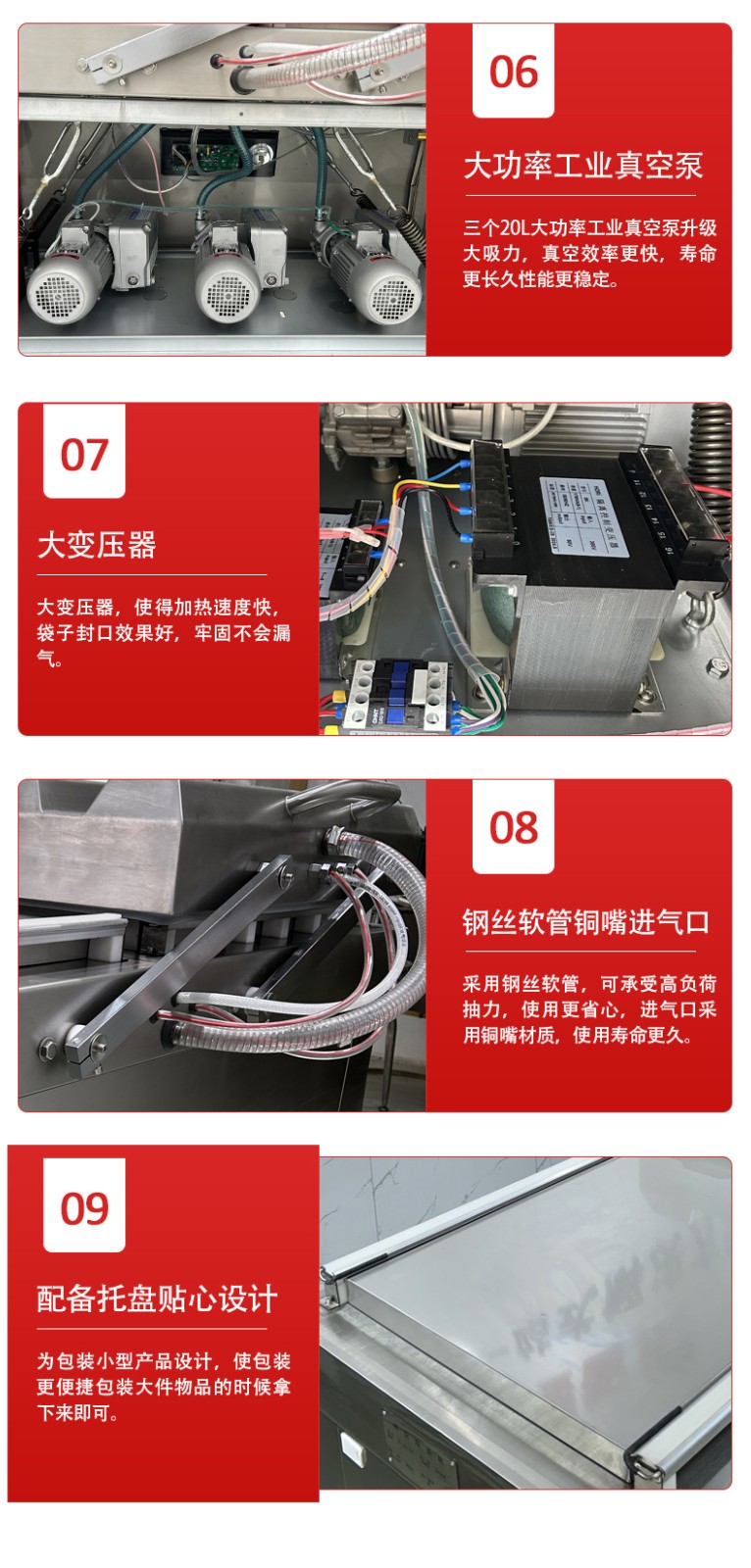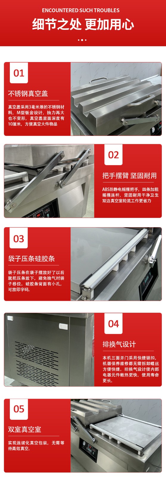 4. 循環往復:左室、右室始終保持 “一室抽真空密封,一室裝袋準備” 的交替狀態,兩個真空室的作業周期無縫銜接,沒有任何空閑等待時間。