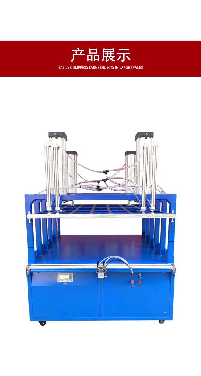 • 智能壓縮系統能夠根據產品的類型和特性自動調整壓縮策略。通過預先輸入產品的參數(如產品的材質、可壓縮性等),設備可以自動計算出合適的壓縮程度和壓縮速度。例如,對于柔軟的棉質家紡產品,壓縮系統會采用相對溫和的壓縮方式,避免損壞產品;而對于具有一定彈性的海綿類產品,壓縮系統可以在保證產品質量的前提下,實現更高程度的壓縮。