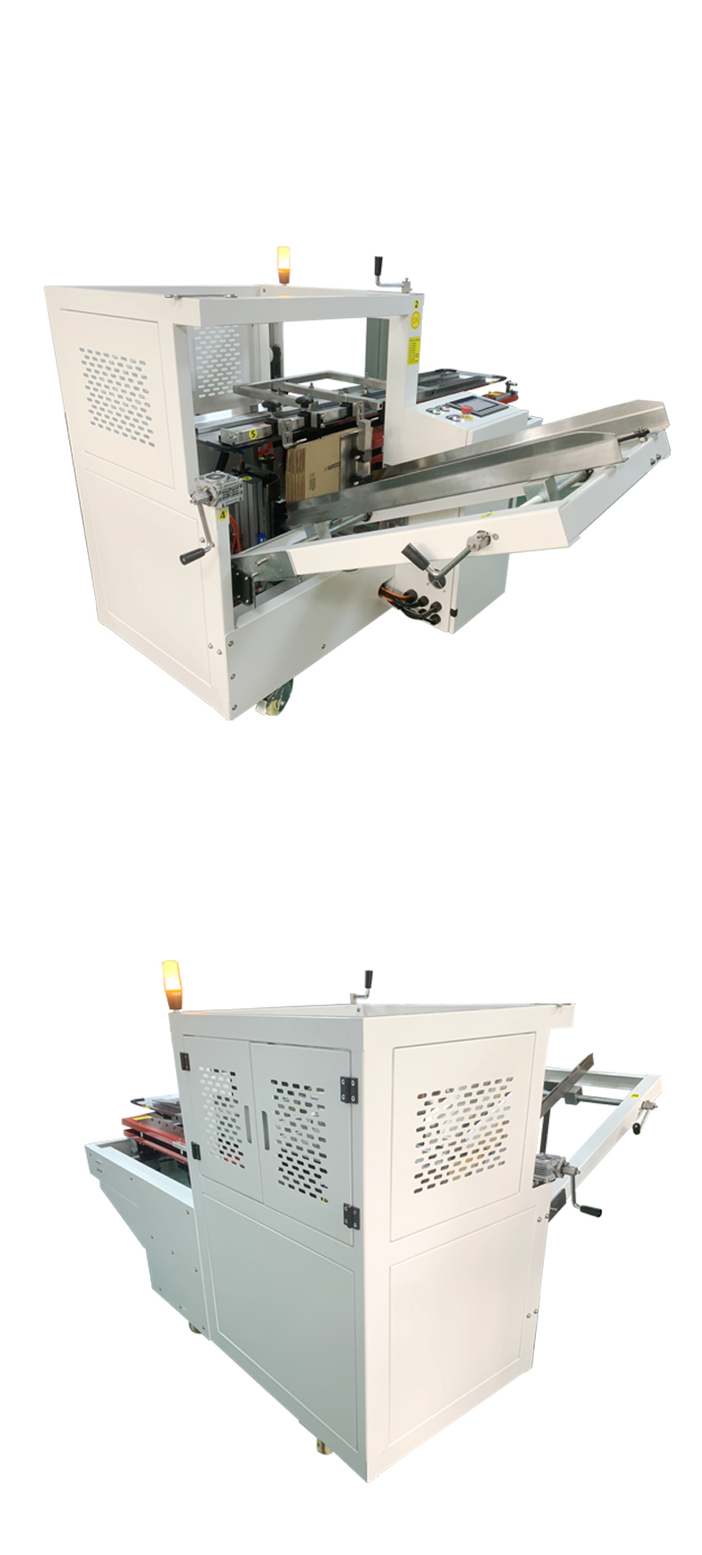 - 膠帶封底方式:如果是采用膠帶封底,機(jī)器會有一個膠帶供給系統(tǒng)。膠帶從卷筒上被引出,經(jīng)過一系列的導(dǎo)向輪,被引導(dǎo)至封底位置。在封底時,首先會有一個裝置將膠帶的起始端粘貼在紙箱底部的一個折頁上,然后紙箱在輸送帶上移動,膠帶隨著紙箱的移動而被拉出并粘貼在其他折頁上。當(dāng)膠帶環(huán)繞紙箱底部一周后,會有一個切斷裝置將膠帶切斷,最后通過一個壓輪等裝置將膠帶壓實(shí),確保粘貼牢固。