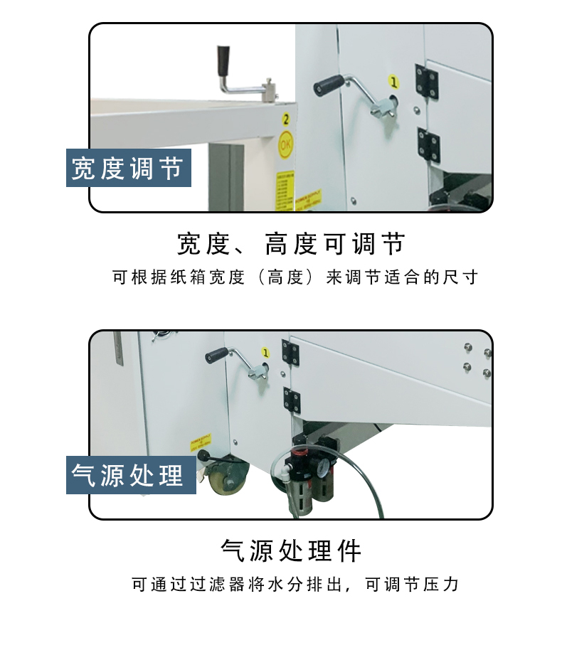 - 熱熔膠封底方式:對于采用熱熔膠封底的機(jī)器,會有熱熔膠槍。熱熔膠在膠槍中被加熱熔化后,通過膠槍的噴嘴均勻地涂抹在紙箱底部的折頁上。當(dāng)折頁被折疊起來時,熱熔膠在冷卻過程中會將折頁牢固地粘合在一起。熱熔膠的用量和溫度可以根據(jù)紙箱的材質(zhì)和尺寸進(jìn)行調(diào)節(jié),以保證封底的質(zhì)量。